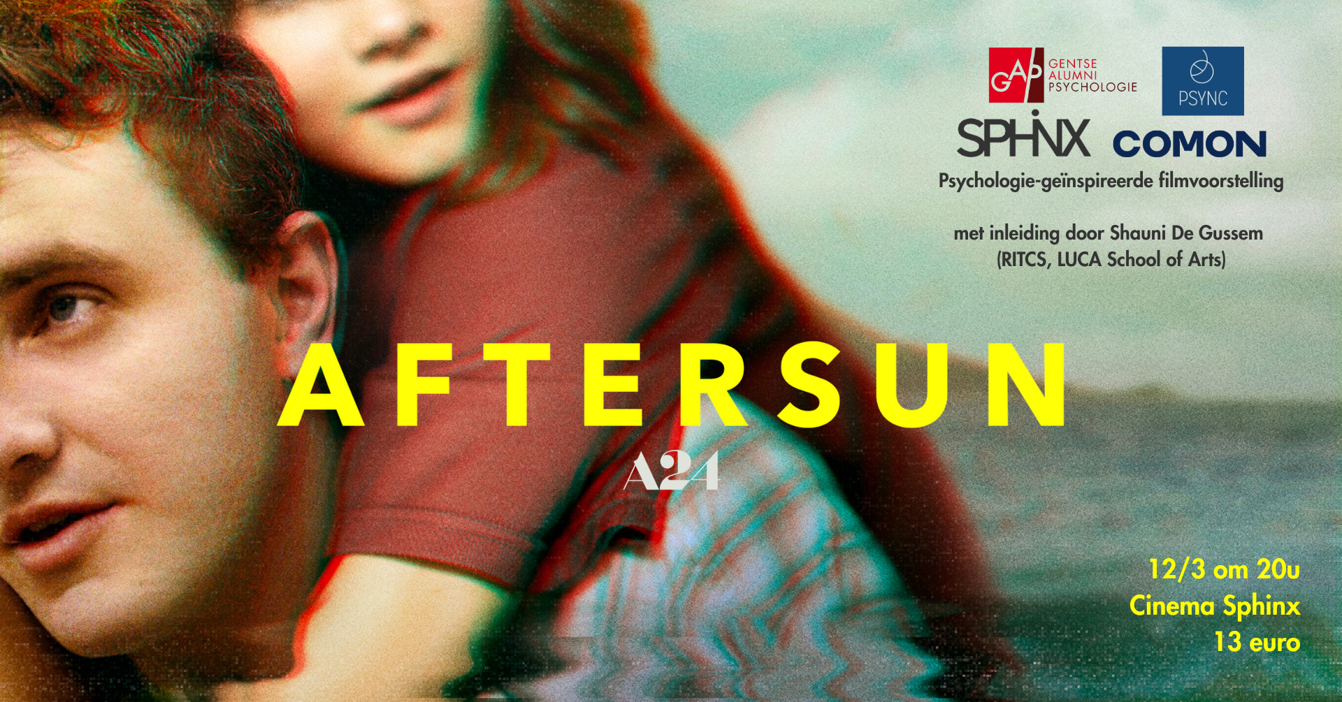 Op 12 maart organiseren de Gentse Alumni Psychologie in samenwerking met PSYNC en COMON een bijzondere filmvertoning van Aftersun in Cinema Sphinx.